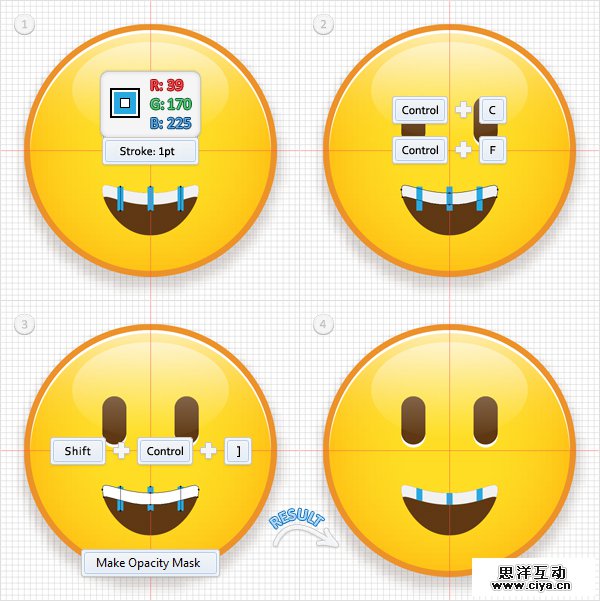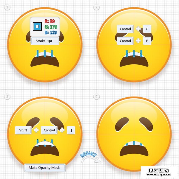 到图层面板,选择现有的图层并编组移动到新的图层。 到目前为止,他们在这个新的子层。 双击这个子层并命名名称”不高兴。 “现在你的第一个表情符号就完成了。
