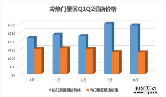 冷门景区的知名度虽然同热门景区相比来说相差甚远,但由于游客相对较少,周边的消费水平基本保持在平稳的状态。根据二三季度的酒店预订价格统计,热门景区酒店暑期酒店价格相较平时上升不少,而冷门景区的酒店价格基本趋于平稳,甚至部分景区为吸引游客还会有小幅度的降价。