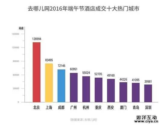 在2016年端午节的酒店成交数据,北京、上海、成都、广州、杭州成为端午出行五大最热门城市。