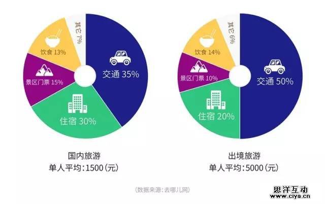 根据去哪儿网的统计数据,境内游人均消费一般在1500元左右,而出境游会是境内游的3倍不止。