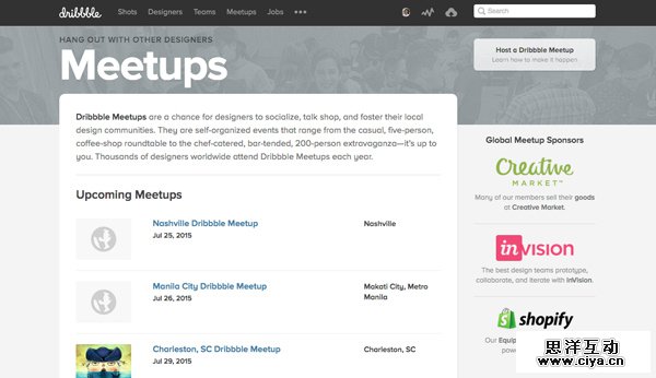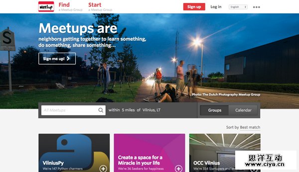 Meetup是另外一个能让你找到许多不同项目的地方,包括设计、商业和技术,能让你结识一些新鲜元素,找到志同道合的人群,能让你有一种回家的感觉。