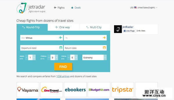 JetRadar 是个航班搜索引擎。它类似于Momondo 会向你提供数百家航空公司的最优价格 (the best deals)。