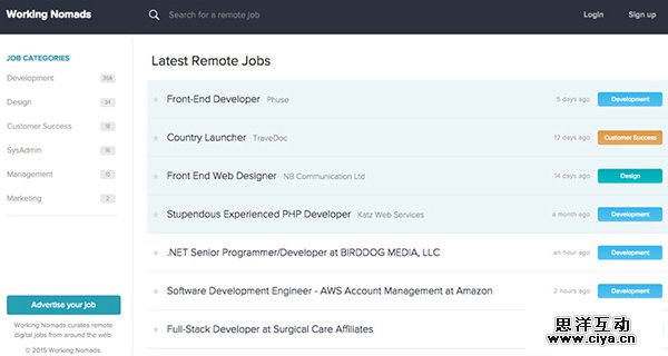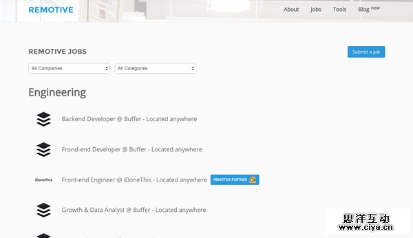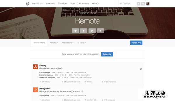 提供在世界各地能够自由办公的一些创业公司的职位的网站。