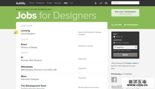 Dribbble的工作平台中有一个单独的页面可以提供远程工作清单,为你的远程工作提供信息。