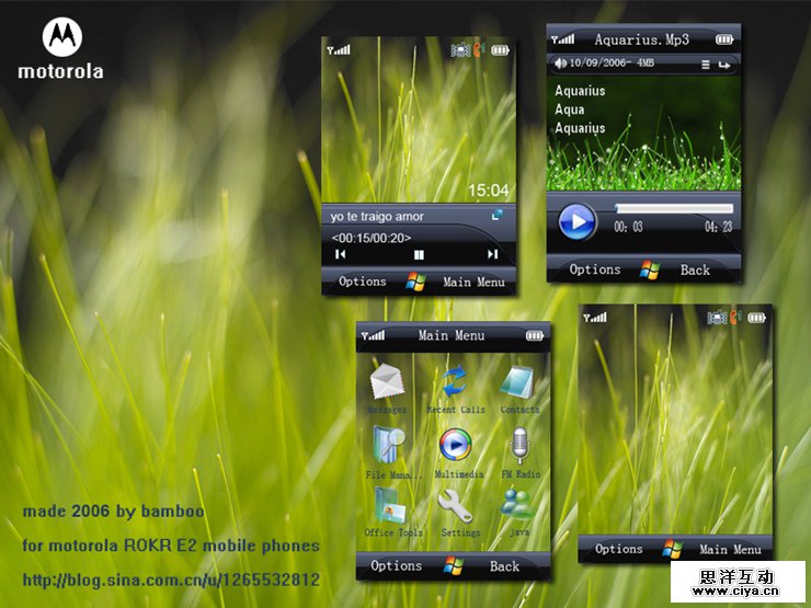 这部手机对于我有非常的意义,因为从他开始我也开始接触手机主题设计。那时候moto还是很风光的,v3刀锋手机全球热卖。我选择这个手机因为便宜量又足。2寸屏,26万色。还是智能机。说是智能机,其实就是可以装些开发者自己捣鼓的小软件。