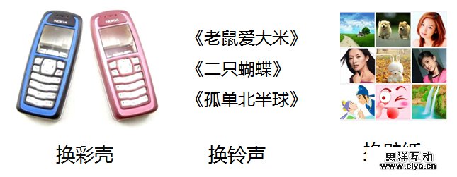 诺基亚的界面还是很单调的,所以只能换换壁纸,铃声什么的。学生么喜欢个性,所以就挖空心思比不一样。人生三大乐趣:换彩壳,换铃声,换壁纸。