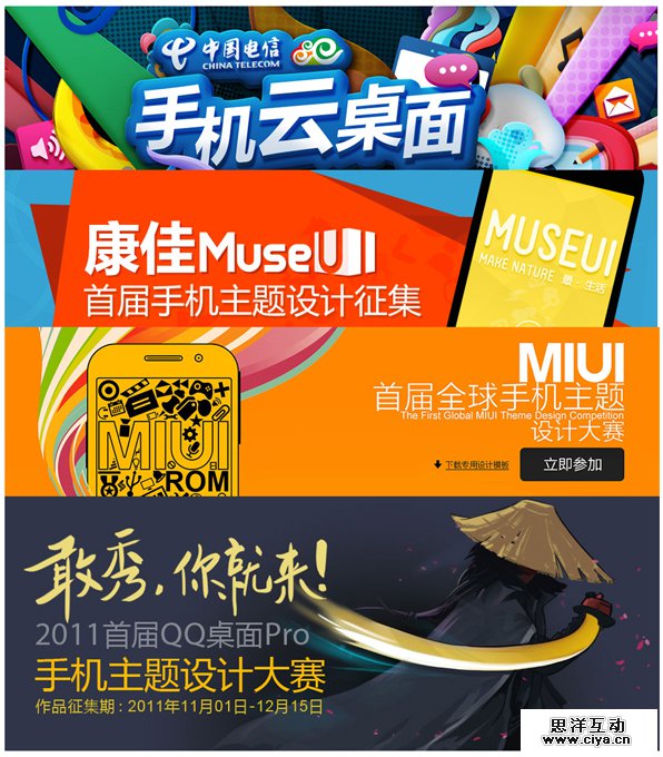 现在国内设计比赛很多,不过把这个比赛当长期的工作来运营的,有几个公司。一个是小米、一个是魅族,一个是360。都开了主题商店之前所以这么积极,都是希望借助主题市场来推广自己的主题应用。谁抓住了更多的移动用户,就有更多的流量入口。