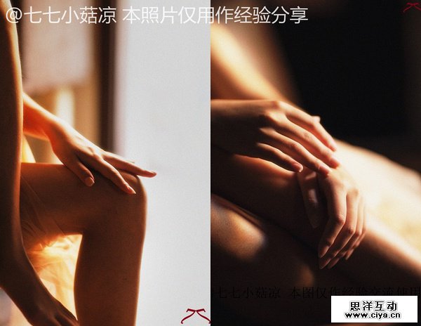 比如下面两组图,聚焦的点无非就是”手和脚",当然男友们可以根据女友的实际情况扬长避短,选择“头发”、“眼睛”、“肩膀”、”表情“等等任何细节。