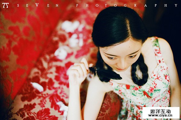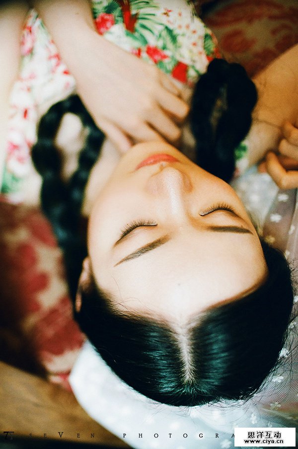 像这样,大面积的花纹和色彩让画面干净又特别,如果女友有状态就多拍些正面,如果表情难抓,就俯拍“全民小脸”pose吧,这时候让她抬头看你也效果不错哟~