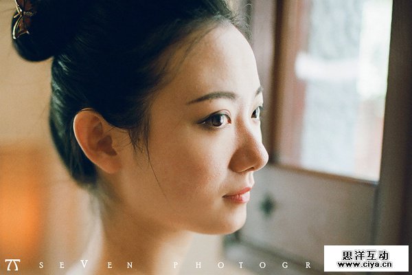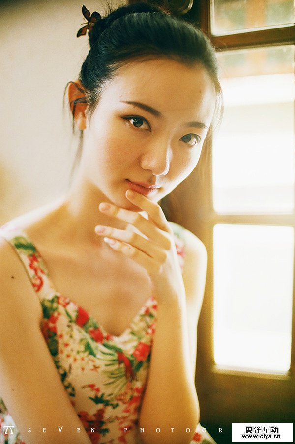 让女友脸对着窗户,光线均匀打在脸上,取半身或者脸部特写。