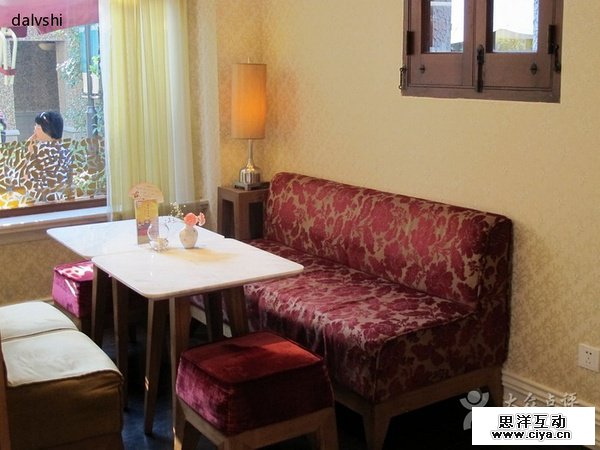 c、座位范围内有些可人的小景或者装饰。甜品店的装饰一般比较精心,找个有桌花、或者漂亮沙发垫的座位,对照片会有帮助。