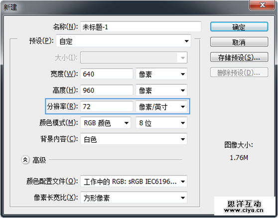 图1-10 Photoshop默认分辨率为72PPI
