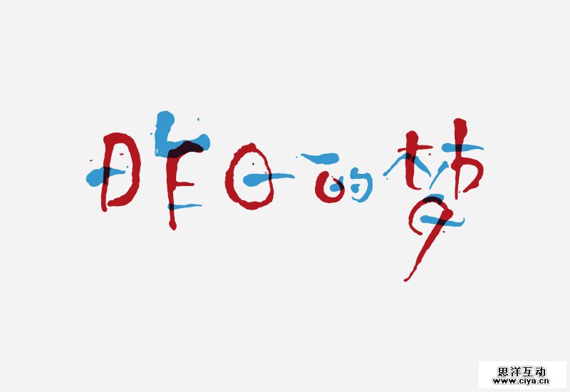02.做中文字体搭建。图中红色笔画部分为西文原字母,蓝色笔画部分是经过修改或局部截取的西文字母。本身英文字体就是手写形式且不规则,我们中文字体也保留这一特点,大家可以想象一下如果这几个字都是一般大小,字体本身的意境或许就没有现在表达的充分。