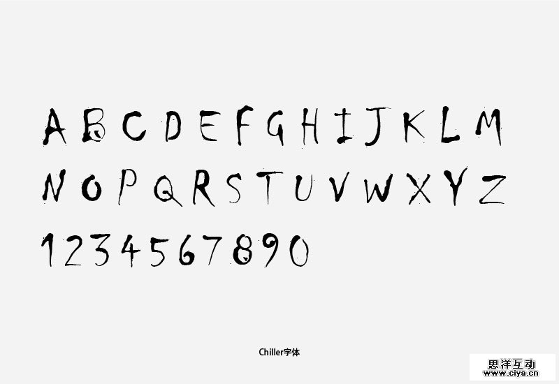 01.图为Chiller字体,比较随性、自然的手写字体。第一步就是一字排开,创建轮廓以备用。