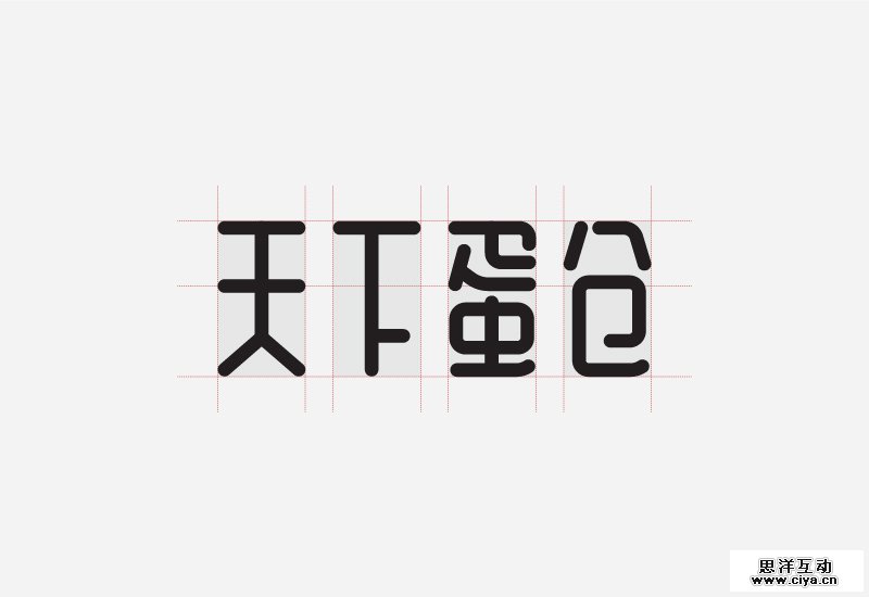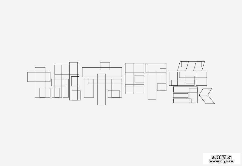具体来讲,块面组合法就是先使用矩形工具设定好笔画的粗细,然后进行组合造字,构建好基本的结构字形,接着做进一步的调整和细化,尝试对一些笔画 进行断笔、共用和删减等处理,不断丰富字体的细节特征。此种方法操作简单,且易于控制,特别适用于初学字体设计的朋友,可以作为字体设计的入门方法进行不 断地尝试与练习。