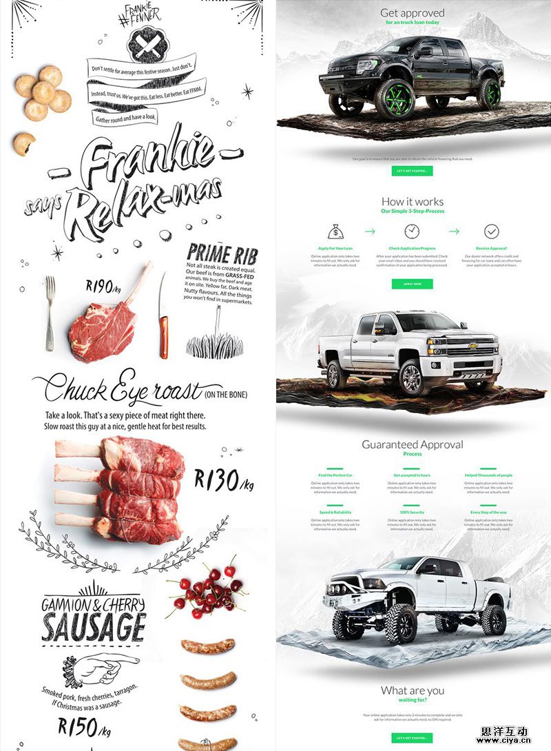 左图1:以手绘的黑白线条为主,用原色的食品形成画面的视觉点,引导用户跳跃式的浏览;