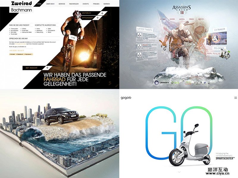 左下3:这里的点,甚至说是页面中的亮点。就是右侧冲出画面的骑行者,这种表现打破画面的平稳,使用户最先关注到破格出画面的人物,同时也体现出户外骑行的自然和冒险;