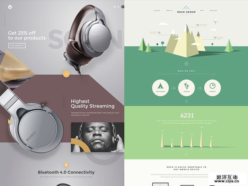 左图2:明快、对比强烈的色块分别置于画面的左右侧,让用户的视线跟着这些色块进行移动,既活跃了画面,又丰富了整体效果。