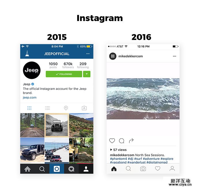 早在5月份,Instagram发布了新设计的UI时,我第一次注意到这种新趋势。