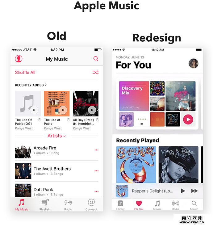 发布会中有一点特别吸引我。那就是Apple Music的改版设计。虽然它改版的最重要方面是用户体验提升和新增功能,但我首先注意到的是它的朴素。Caitlin McGarry,Macworld的本报记者就很准确地描述了这次更新,“它有一套全新外观,巨大的卡片、加大加粗的字体、干净的白背景,突显唱片艺术。”