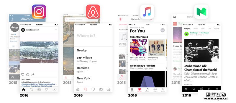 过去几个月来,设计创新领域的先行者们,将“极简设计”推向了一个新的高度。Facebook、Airbnb和Apple都遵循着近似的原则,简化它们的核心产品,这种“化繁为简”(Complexion Reduction)的新趋势就在它们的移动端设计中得到体现。