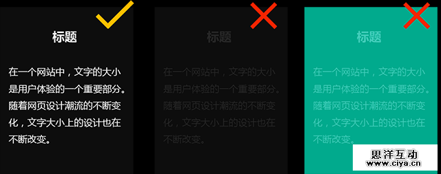 设计师在使用这一原则时需要注意,必须确保文字是容易看清的,如果文字过小或过于纤细、色彩对比度不够,会适得其反,举个例子: