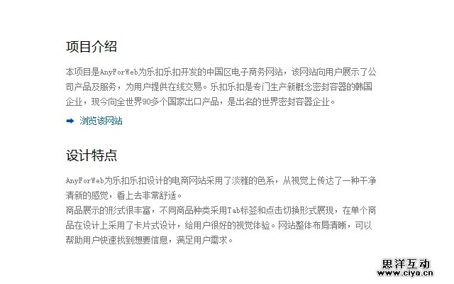 在AnyForWeb网站案例页面中,标题使用18号的微软雅黑,正文使用12号的宋体,两种字体字号的对比让文字内容富有层次,很容易吸引读者眼球。