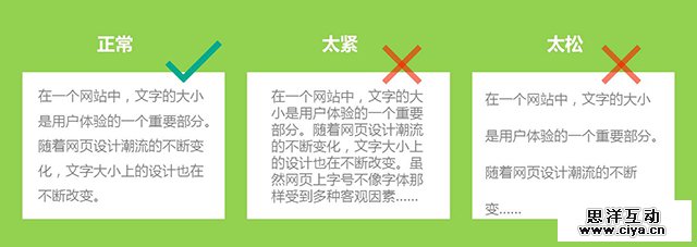 行距是影响易读性非常重要的因素,过宽的行距会会让文字失去延续性,影响阅读;而行距过窄,则容易出现跳行。