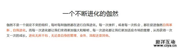 在伽然官网中,一部分文字采用了与主要文字不同的另一种颜色,这种对比是增加视觉效果的有效途径之一,突出展示了段落的重点。