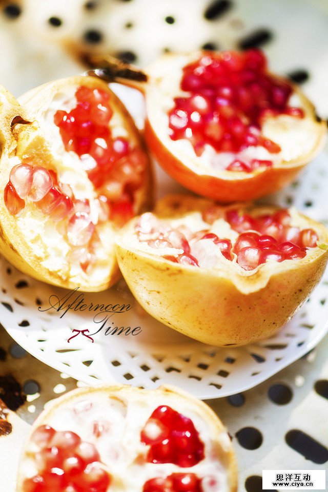 “剥石榴和葡萄时滚落的颗粒,都被直接放进了嘴里。这样一边满足地吃着一边拍摄的照片,也充满了“同享欢乐时光”的意味。这不是一个被搭建的布景,而是生活的一段真实截取。会有笑容亲切的夫人坐在这个位子上,拿起茶杯饮茶,她的孩子坐在身边拿着石榴剥进嘴里,并且喝玻璃杯里的葡萄汁。