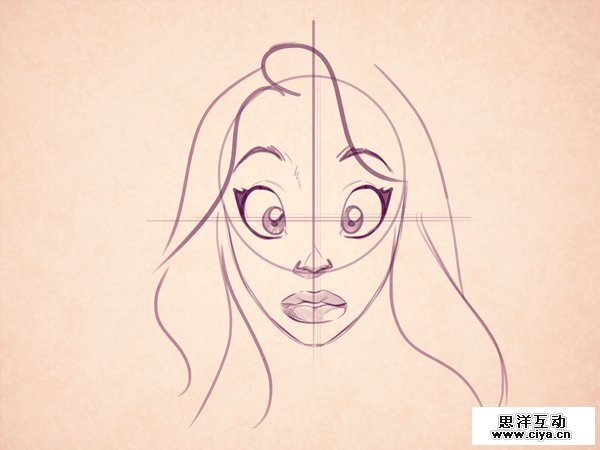 首先我们要为这个角色画一个经典的圆形头部结构。