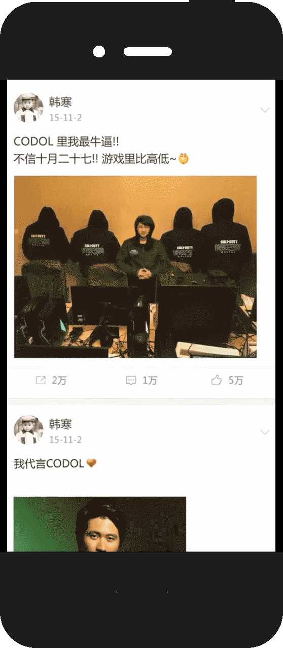 为了借助韩寒的个人影响力让更多人知道CODOL这款游戏,决定在公测前来一波以韩寒为主要素材的预热H5。希望能够将韩寒的个人形象与游戏高度关联,借助代言人之口将CODOL宣之于众。
