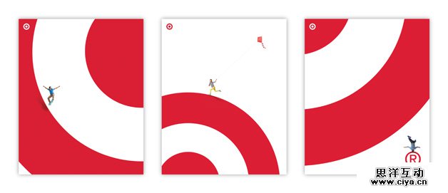 某个聪明的人曾告诉我,好的海报需遵循所谓的“5守则”:50英尺,5英尺和5英寸等等,每一段距离需要由不同内容来交代。上面的例子可以较好地说明“5守则”。观众首先在50英尺开外看到了箭靶,5英尺时注意到了正在玩logo的小人。距离5英寸时,你能仔细端详人物的表情、动作与衣服细节。