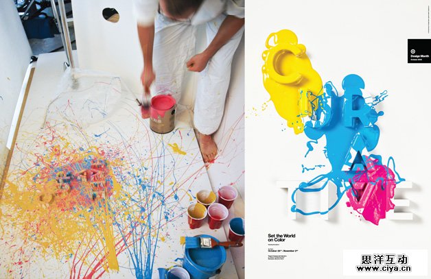 尝试远离电脑工作与思考。选出表达你观念的最好方式,无论是三维雕塑还是波洛克式倾洒颜料,只要能更好地表达自己,去做就是了。而非电脑制作的手工不完美效果,用来强化和人性相关的点子的视觉印象更贴切。