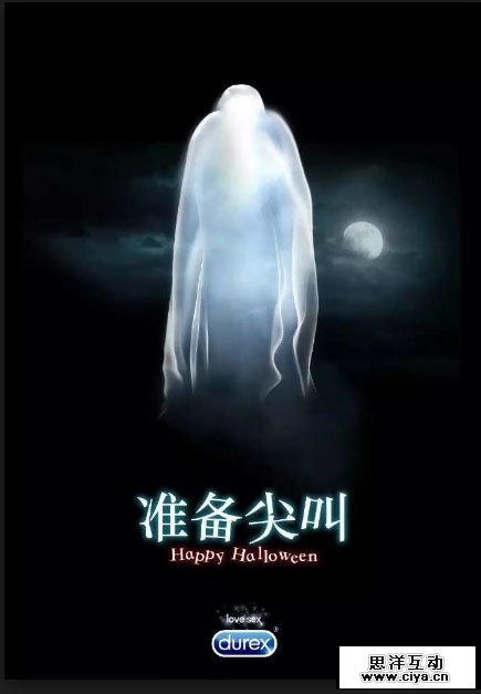 设计师也是挺懒的,基本上就是罗列出来万圣节的要素,一个月黑风高的夜晚,离不开杜蕾斯的TT,外加ghost助阵。看完以后是不是觉得这个懒犯得很值!