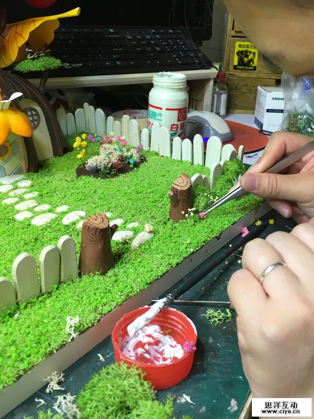 然而最好玩的部分老婆大人来做了,粘上苔藓和干花,还有胶花