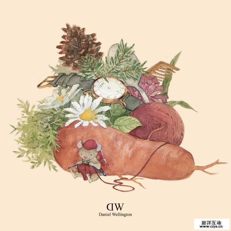 7.最后才画主体的小老鼠,红帽子红毛衣都是它一针一线织出来的,当然蓝色的毛线针是从表盘上拆下来的~