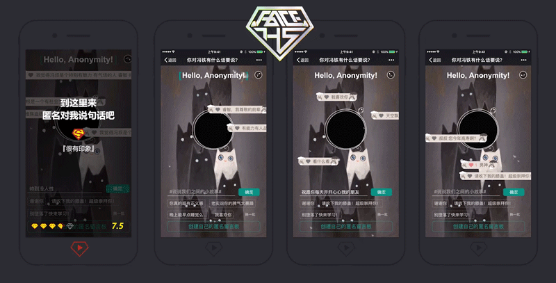 几组静心挑选的“情话”随机推送的方式呈现给用户、匿名弹幕刷屏~伴随抒情式的BGM《Paragon》,当然你也可以创建自己的匿名留言板。