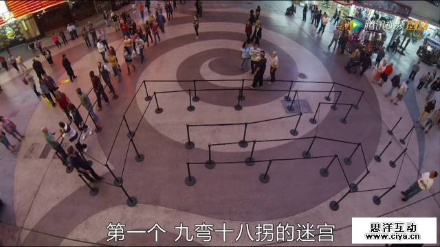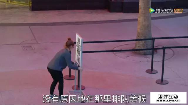 这个实验放在了拉斯维加斯的一个广场上,摆放了一个排队的区域,同时放了一个牌子写着「在这里开始排队」。
