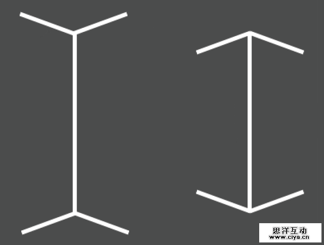 再看看下面这个图,两段棕黄线段哪段比较长一些?是不是感觉后面的那根线更长?