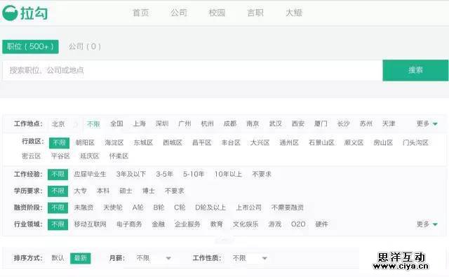 这是拉勾网的标签,包括工作地点,工作经验,学历,薪资,公司领域。