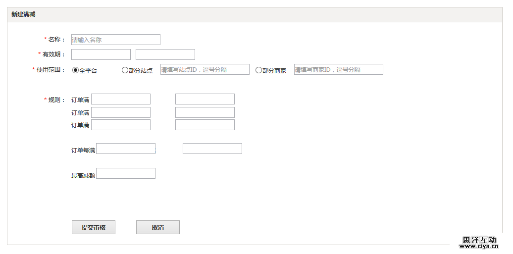 此处做了新建满减活动的大致demo,做一简略解析。