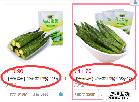 图中同样为35g的秋葵干,单买的话一袋10.9元,而三袋一起买的话价格为41.7元,也就是说多买比少买要更贵,这是什么道理? 真相是41.7元的秋葵为满99减50那个list页专属频道的产品,满99减50等同于半价,如果按此算下来这秋葵买的也不算亏,但是并没有想想中的那么便宜。稳稳地抓住了用户“贪”的弱点,其实便宜是占到了,没那么大。所以,去超市看到食品几包困在一起销售便宜的时候,也注意看一下,单买到底是多少钱。