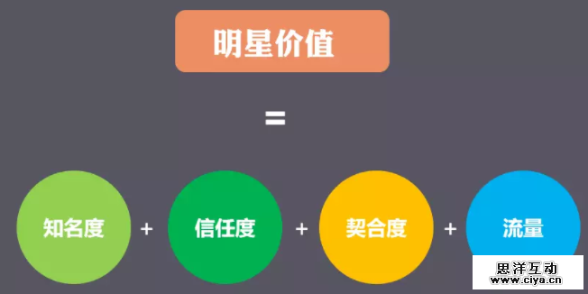 综上,一个好的明星价值,是包含了 知名度、信任度、契合度、流量这 4 个方面。