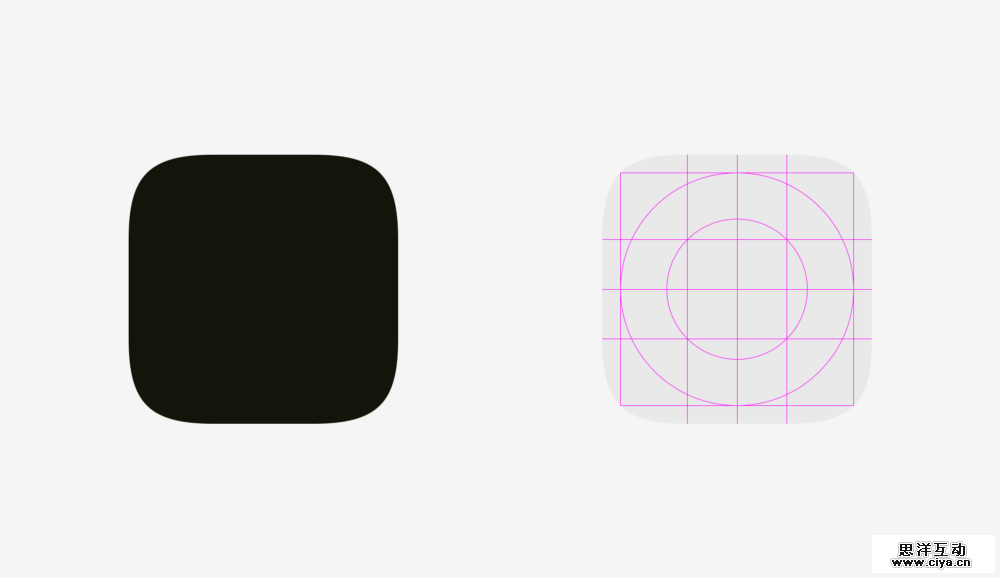 同样,我们也可以把它运用到app icon的设计上。一个并不简单的圆角使用标准达到了一个完美的结果。但是既然我们已经谈到这个话题,我们不妨自己试一试这两个圆角有什么区别。