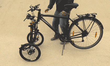 它是第一款在几秒钟内就能和自行车前轮部分连接的手推车。