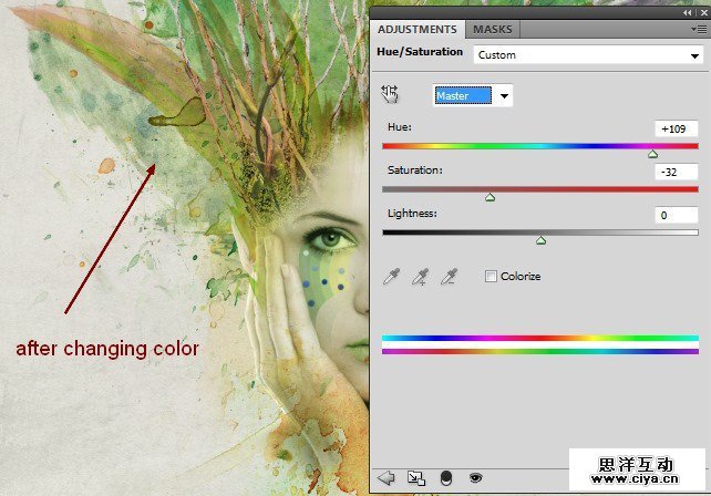 不过还需要一个色相/饱和度调整图层来调整一下此效果的颜色: