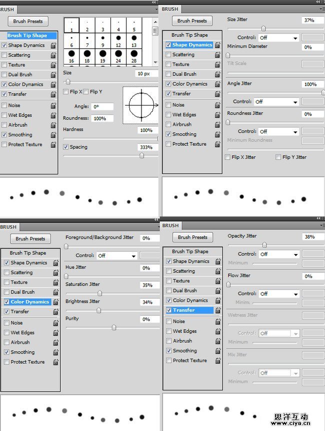 新建一个图层,选择颜色为#012955的硬笔刷,在左眼下方点一些点。在画点前,按F5更改此画笔的设置: