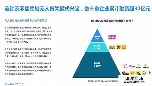 1月17日,TalkingData发布的《2017年无人货架行业白皮书》显示,据不完全统计,数十家无人货架创业企业的累计融资额度已经超过30亿,无人货架市场前景被广泛看好。