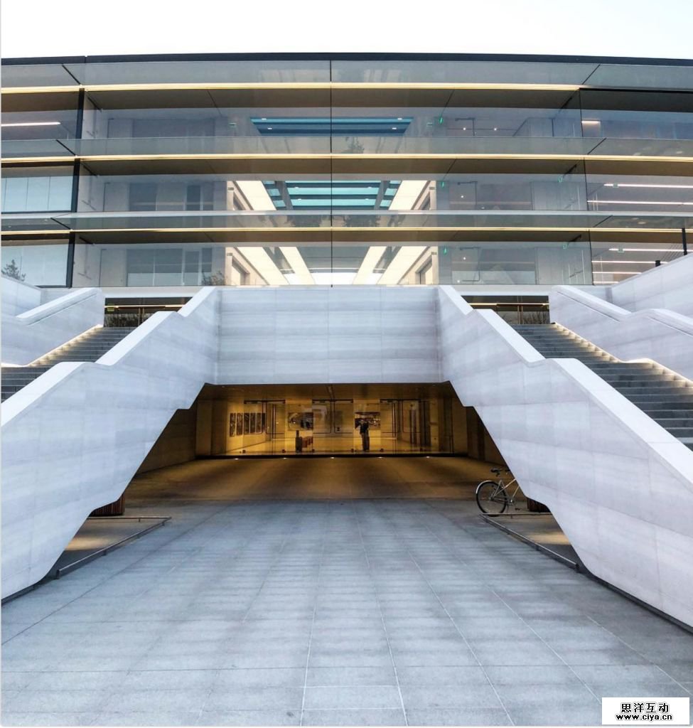 看看那些灰色的苹果自行车,停在那里便于人们四处走动。一些停车场离主楼有 10 分钟的步行路程。我现在在苹果公园上班,园区的楼梯还会在晚上亮起来。